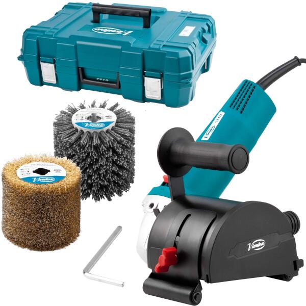 Fa, fém vagy kő felületek megmunkálásához Nagyteljesítményű gép polírozás és különféle felületek öregedésének kialakítására. Lehetővé teszi a festékek eltávolítását fáról, fémfelületről. A Virutex számos kiegészítőt forgalmaz a különböző alkalmazásokhoz. Nagy teljesítményű, 1400 W-os motorral felszerelt, amely védve van a portól. Pontos működés és elektronikus lágyindítás Elektronikus sebességbeállítás Kettős reduktorral felszerelt Állítható vezetőrendszer az egyszerű és biztonságos munka elvégzéséhez Külső porgyűjtő rögzítés Műszaki adatok Kefeméret: 100 x 100 x 19 mm Súly: 3,6 kg Teljesítmény: 1.400 W Üresjárati sebeség (min-1): 1000 - 4000 / perc